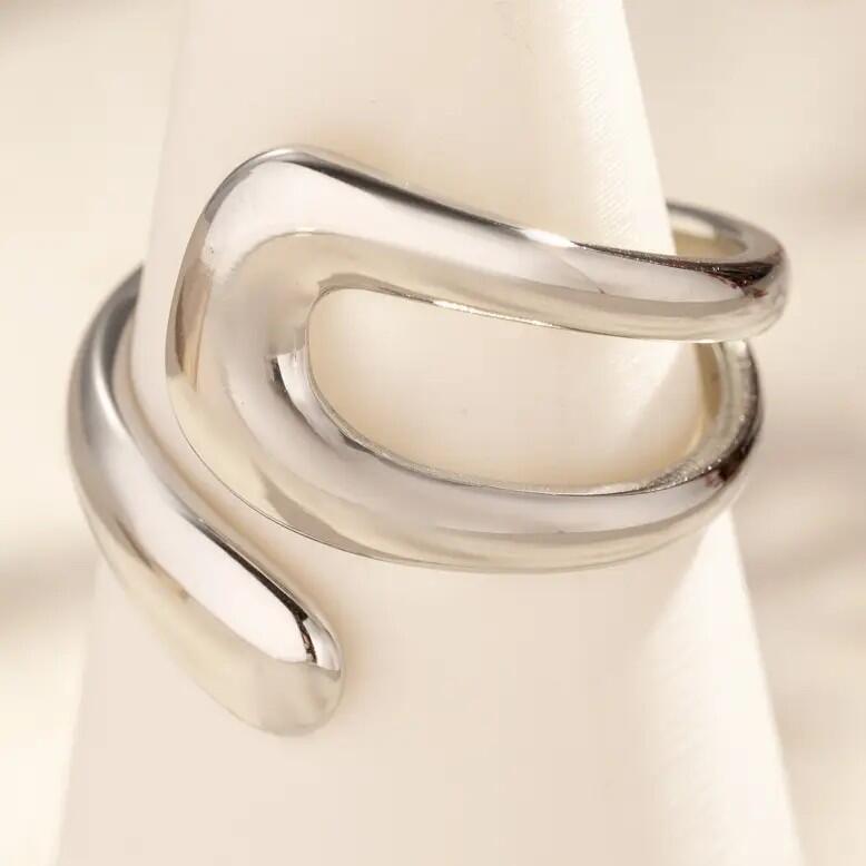 Questo anello argentato incarna la purezza del design contemporaneo. La sua forma fluida e scultorea avvolge il dito con sottigliezza. Minimalista ma espressivo, riflette un'eleganza senza tempo. Perfetto per chi ama le linee pulite e i gioielli che raccontano una storia di semplicità raffinata. In Acciaio Inossidabile, Senza Nichel, senza Cadmio e senza Piombo.