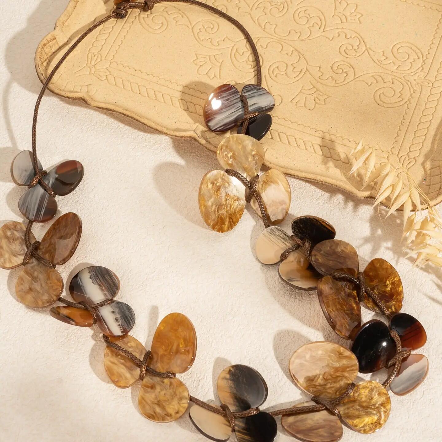 Questa lunga collana boho chic in resina colorata illumina ogni outfit. Le sue perle fantasia dai toni vibranti evocano l'artigianato e la libertà creativa. Leggera ed elegante, esalta i look estivi o boho. Perfetta per le amanti dei gioielli originali, questa collana artigianale è un must-have di tendenza per affermare il proprio stile con poesia.