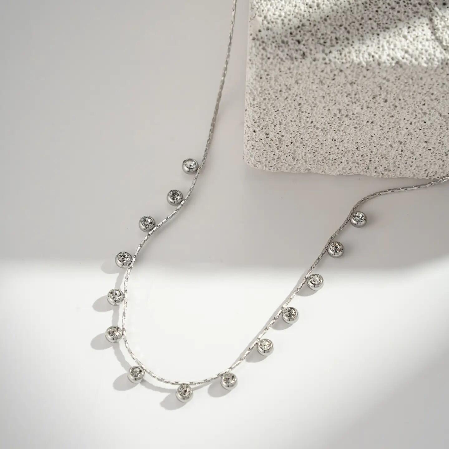 Collana con ciondoli in cristallo in acciaio inossidabile serata elegante SILVER
