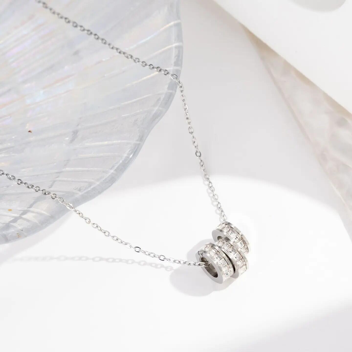 Collana donna in acciaio inossidabile triplo anello cristallo SILVER