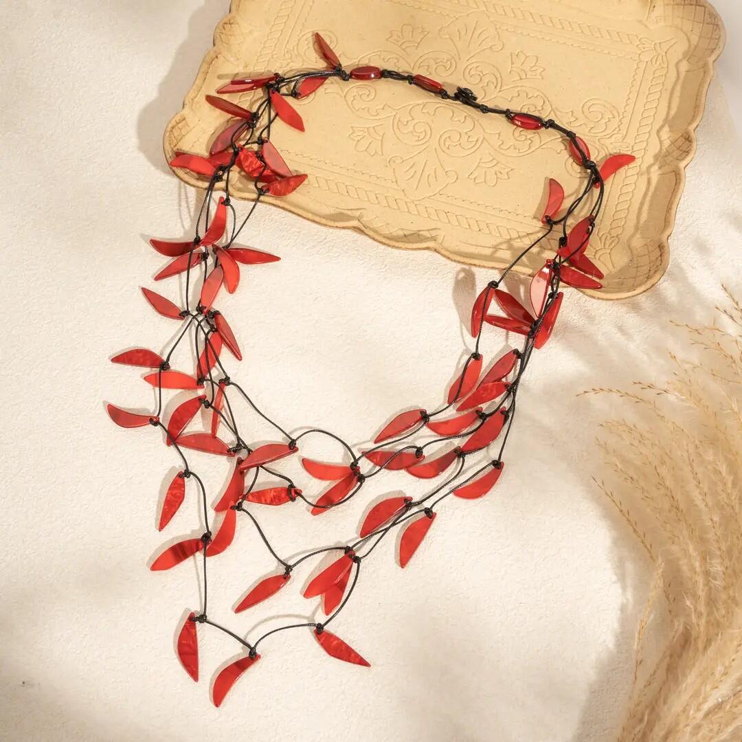 Immergiti nell'universo del boho chic con questa collana multistrato adornata con foglie in resina Leggera ed elegante, aggiunge un tocco naturale e raffinato a tutti i tuoi outfit. Perfetta per le feste come per tutti i giorni, questo gioiello incarna lo spirito libero, colorato e luminoso dello stile bohémien.