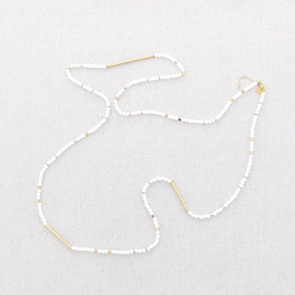 Collana lunga caratterizzata da piccole pietre colorate e tubetti in acciaio, per un tocco moderno e vivace al tuo look.
