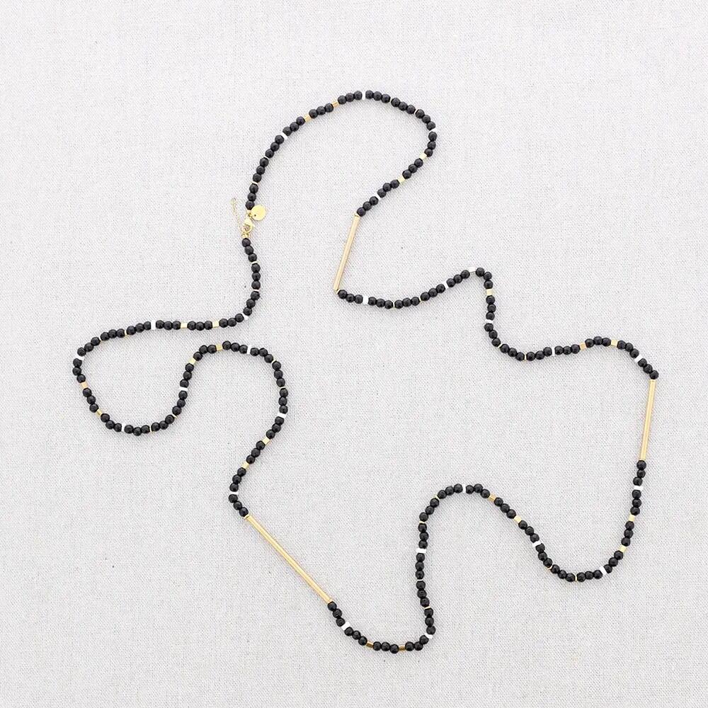Collana lunga caratterizzata da piccole pietre colorate e tubetti in acciaio, per un tocco moderno e vivace al tuo look.