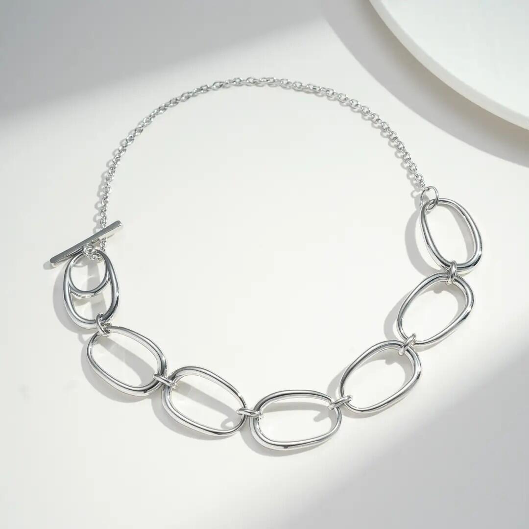 Questa collana in acciaio inossidabile argentato si distingue per i suoi ampi maglie ovali dal design essenziale. Un gioiello audace e moderno, ideale per valorizzare tutti i tuoi outfit. Leggero, resistente e anti appannamento, unisce stile e durata per un look deciso ogni giorno. In Acciaio Inossidabile, Senza Nichel, senza Cadmio e senza Piombo.
