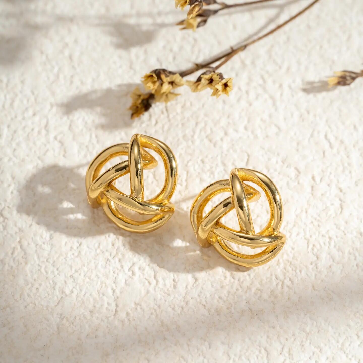 Questi orecchini in acciaio inossidabile dorato presentano un design annodato sofisticato, ispirato agli intrecci celtici. La loro finitura brillante e la forma scolpita offrono un aspetto elegante e senza tempo. Ipoallergenici e durevoli, esaltano i tuoi abiti con un tocco artistico e raffinato. Un gioiello luminoso, perfetto per le amanti dei dettagli simbolici e stilosi. In acciaio inossidabile, senza nichel, senza cadmio e senza piombo.