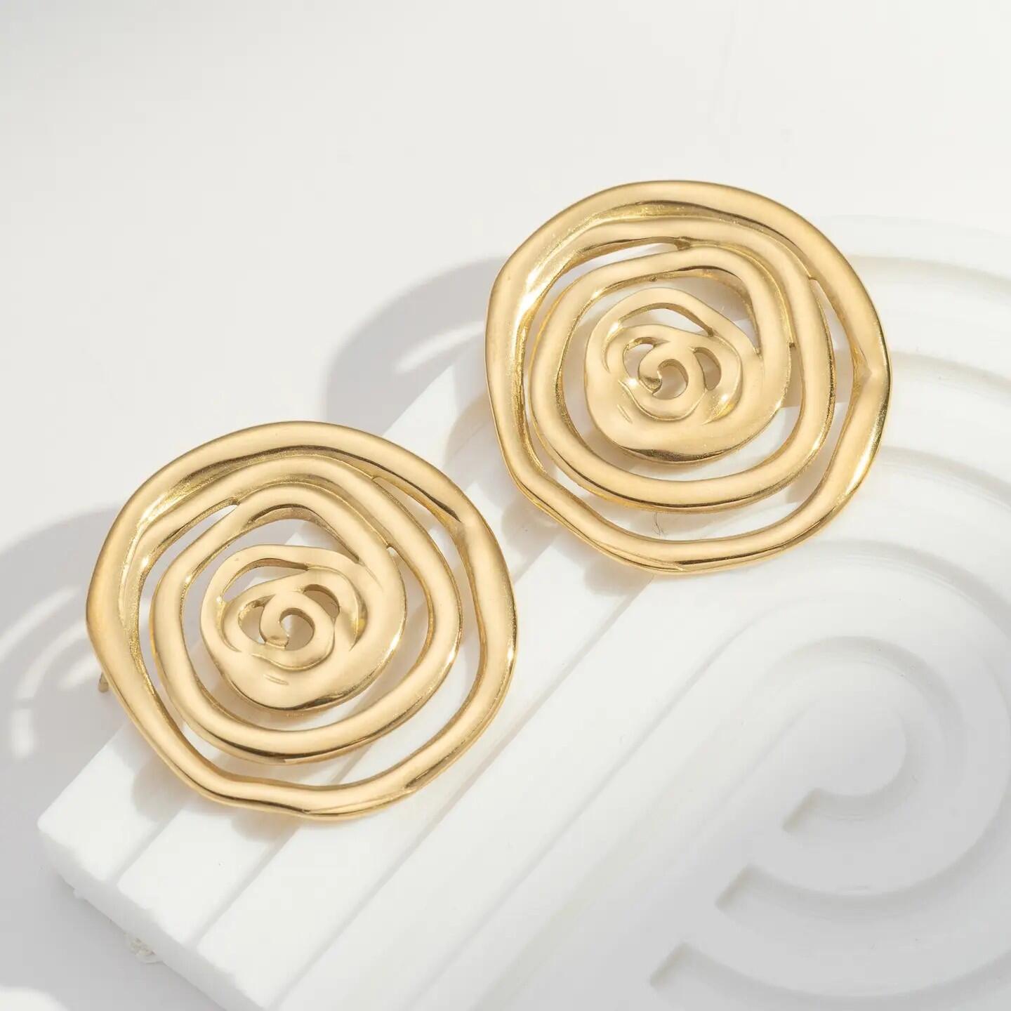 Questi orecchini in acciaio inossidabile dorato presentano un elegante motivo a spirale, ispirato alla rosa astratta. Il loro design scultoreo cattura la luce e sottolinea la femminilità con audacia. Ipoallergenici, durevoli e leggeri, sono perfetti per le donne che cercano gioielli originali e moderni. Ideali per valorizzare un abbigliamento sia diurno che serale, questi orecchini dorati a spirale incarnano la perfetta combinazione tra sofisticazione artistica e comfort quotidiano.