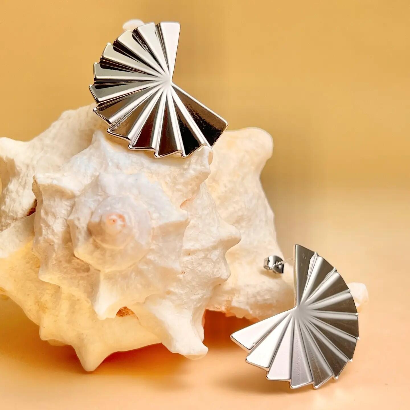 Questi orecchini in acciaio inox presentano una forma stilizzata a ventaglio con rilievi geometrici. Un gioiello dal design audace, perfetto per un look sicuro ed elegante. Ipoallergenici, leggeri e resistenti all’acqua, uniscono comfort e originalità.In acciaio inox, senza nichel, cadmio o sali di piombo.