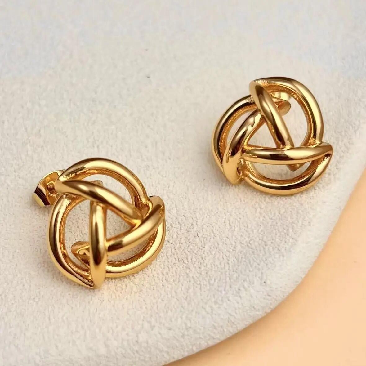 Questi orecchini dorati dal design a nodo intrecciato incarnano la sofisticazione discreta. La loro forma scolpita cattura la luce con sottigliezza, aggiungendo un tocco moderno e raffinato al tuo look. Leggeri e confortevoli, si indossano sia quotidianamente che di sera. Un gioiello senza tempo che unisce minimalismo ed eleganza assoluta.