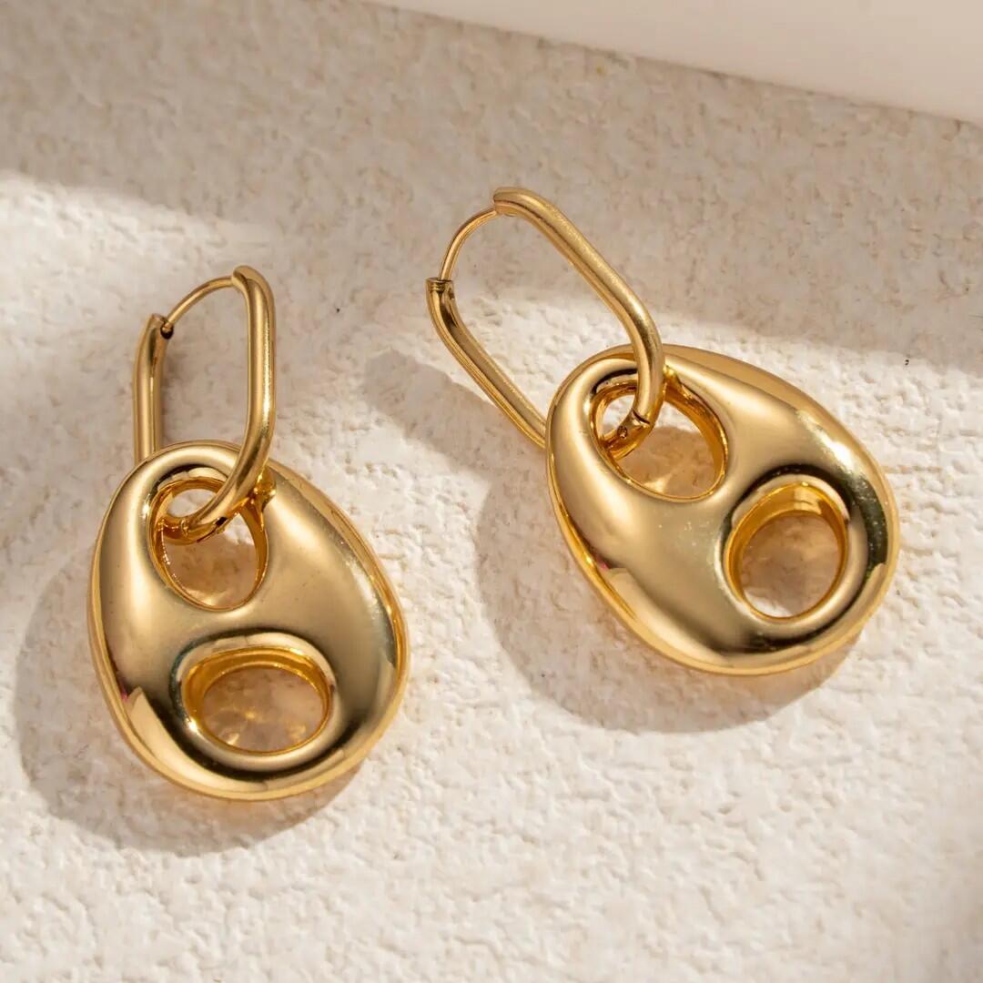 Questi orecchini ovali in acciaio inossidabile dorato offrono uno stile moderno e minimalista, ideale per valorizzare tutti i tuoi outfit. La loro forma elegante e pulita aggiunge un tocco sofisticato sia nella vita quotidiana che nelle serate. Realizzati in acciaio inossidabile, sono resistenti all'acqua, non si ossidano e sono adatti alle pelli sensibili. Leggeri e confortevoli, diventano un must-have per chi cerca gioielli durevoli, alla moda e facili da abbinare. In acciaio inossidabile, senza nichel, senza cadmio e senza piombo.