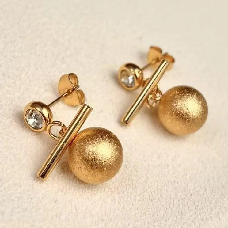 Questi orecchini moderni combinano una sfera dorata testurizzata con una barra essenziale e un cristallo scintillante. Il loro design minimalista e sofisticato esalta qualsiasi abbigliamento, dalle occasioni quotidiane a quelle speciali. Un gioiello chic e senza tempo per chi ama l'eleganza discreta.