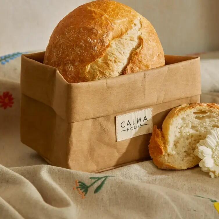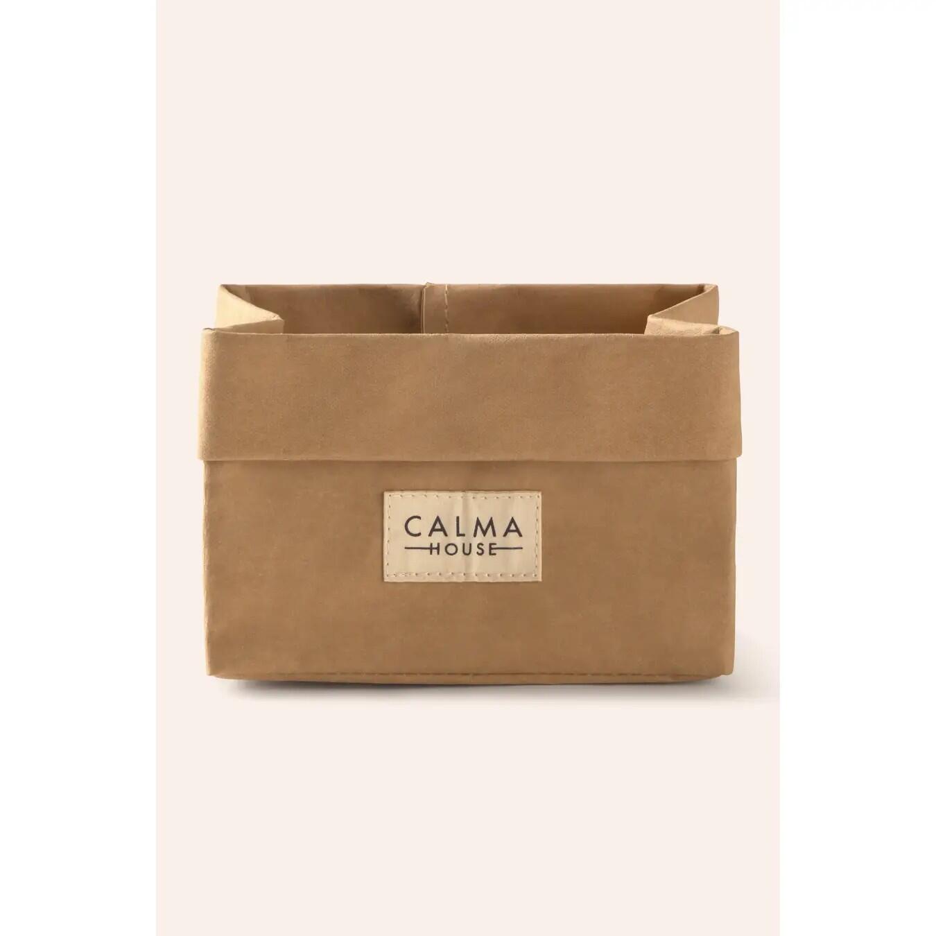 Cesto di carta resinata e cucito. Resistente all'acqua.