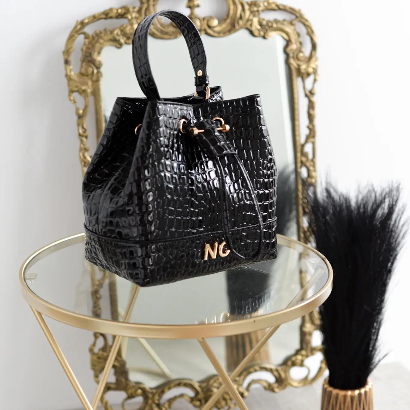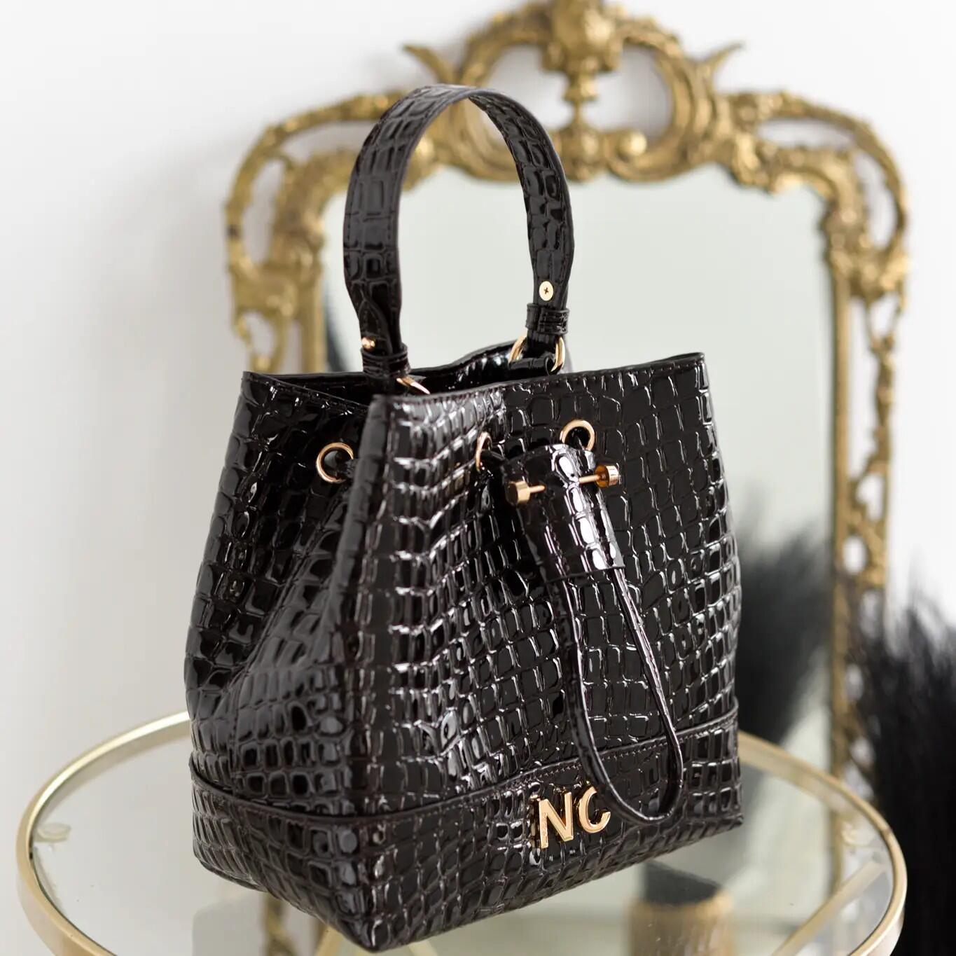 Questa borsetta di medie dimensioni eleva il design classico con una finitura strutturata in vernice effetto coccodrillo, offrendo un look elegante e molto attuale. Include un manico e una tracolla regolabile per portarla comodamente a tracolla, ideale per muoversi con stile durante tutto il giorno. Il tocco finale è dato dalle iniziali NC in metallo dorato, che conferiscono identità e un richiamo all'essenza Noco.