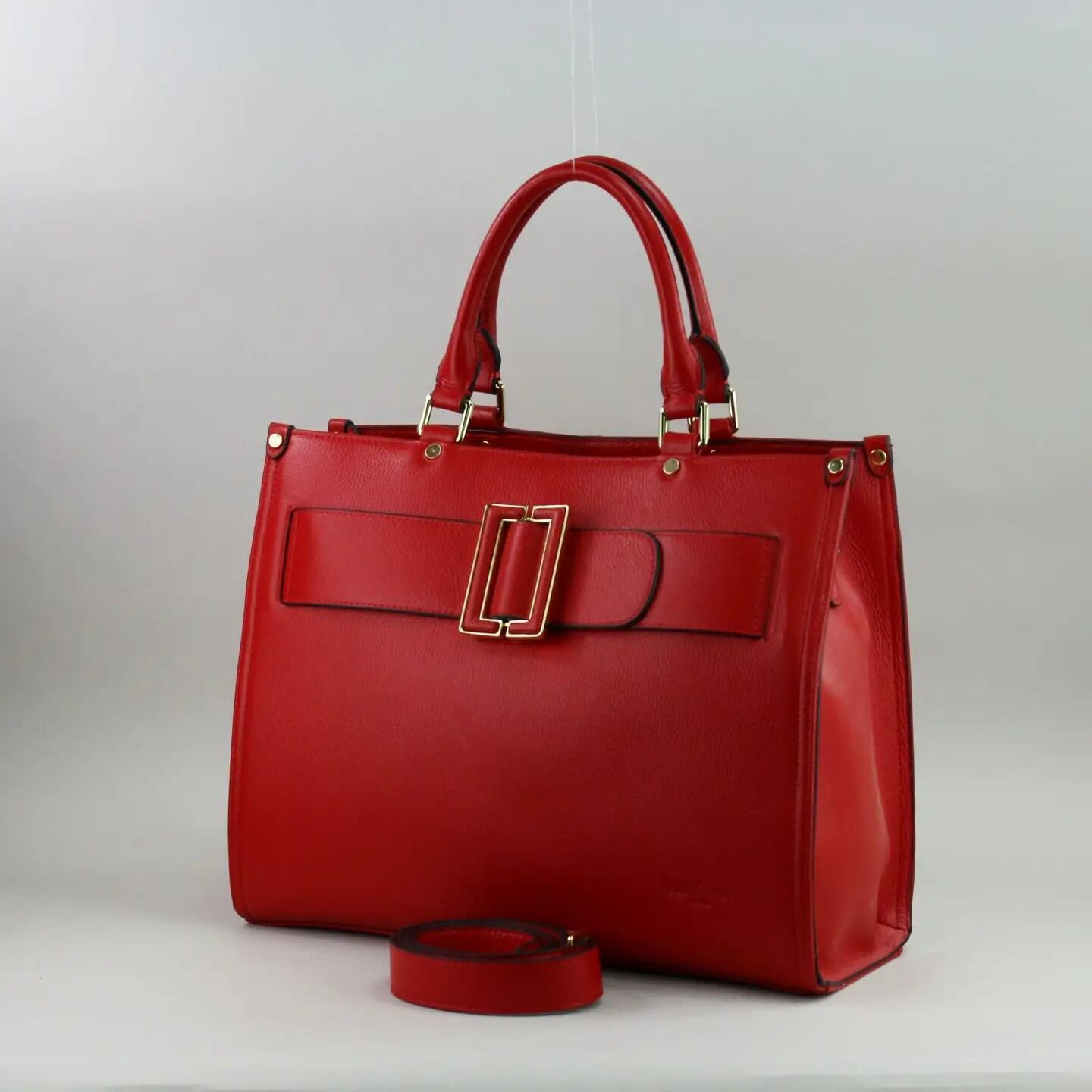 Borsa realizzata in pelle di bovino sbalzata.Chiusura principale con cerniera.Tracolla rimovibile con lunghezza massima di 115 cm.Tasca posteriore con zip.Fondo borchiato per maggiore protezione.Dimensioni (L x A x P): 35 x 27,5 x 14,5 cm.Colore: rosso.Materiali: pelle di bovino.Artigianal
