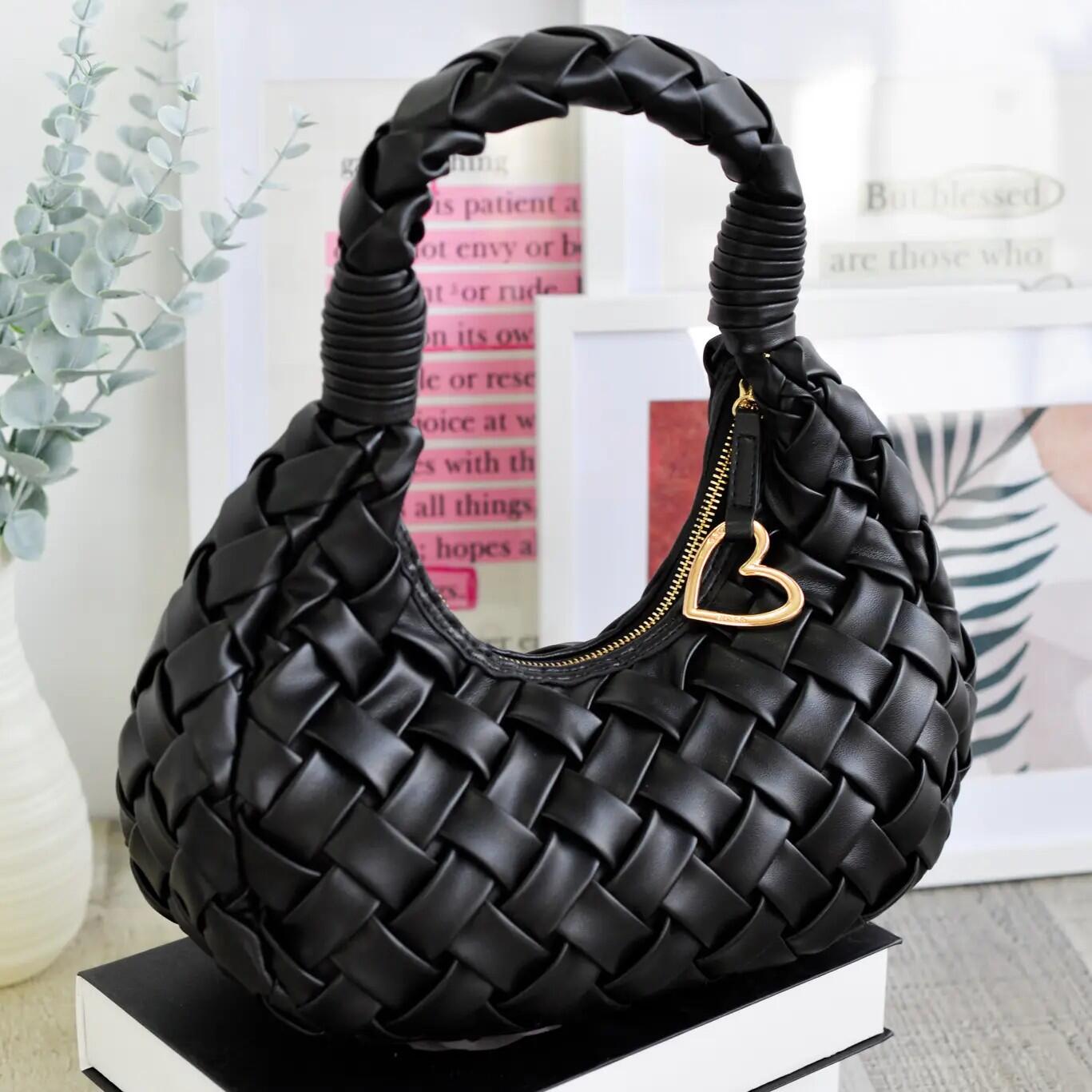 Borsa gondola in pelle sintetica intrecciata combina texture morbida con funzionalità. La sua dimensione è perfetta per chi cerca una borsa pratica ma con stile.