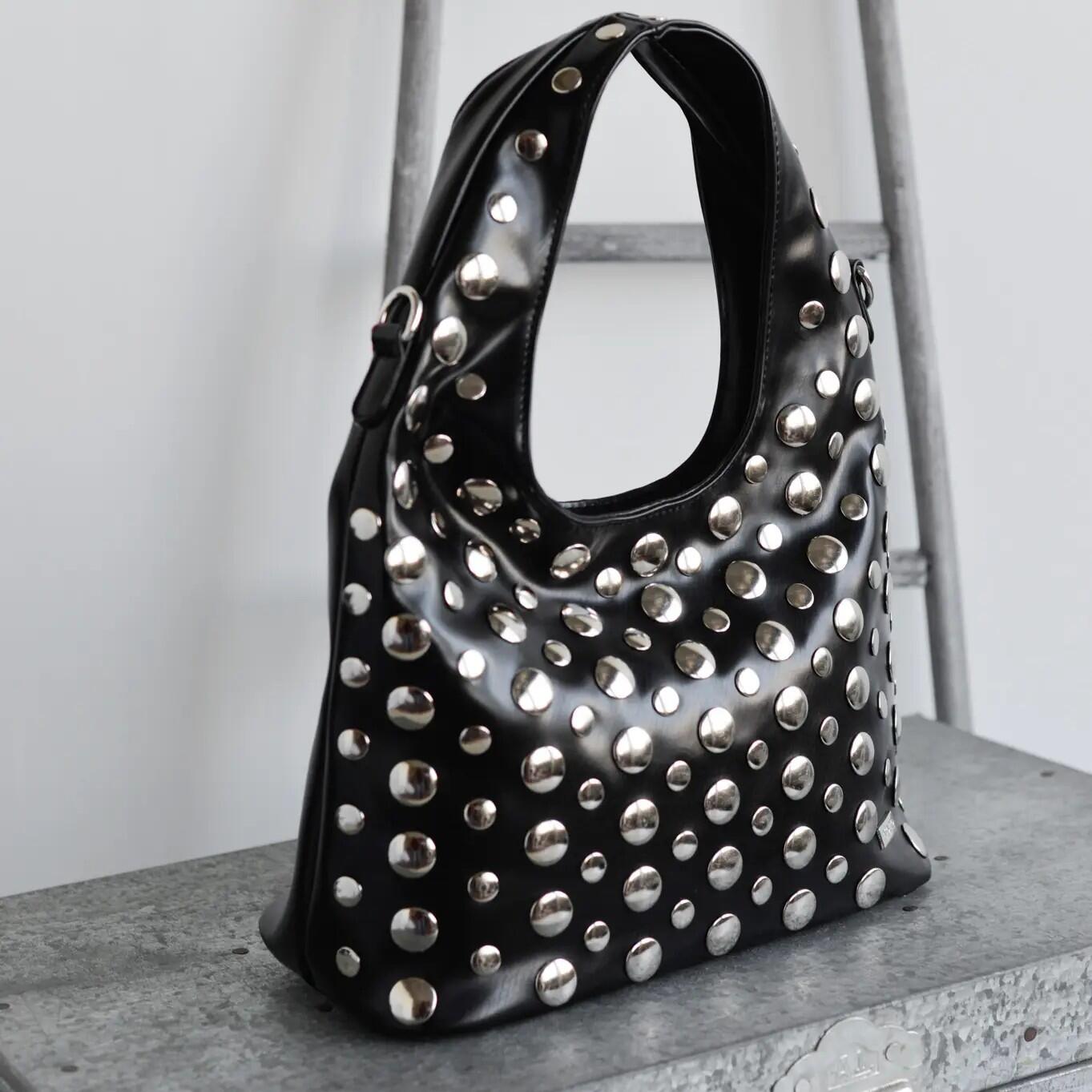 Con una dimensione media pensata per portare l'essenziale con stile e presenza, è il pezzo ideale per chi desidera una borsa che parli forte e chiaro.Ideale per: look urbani, outfit con personalità e tocchi rock chic.