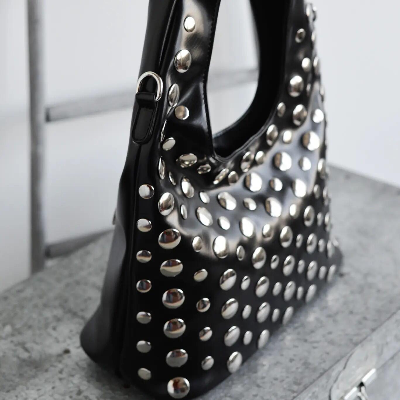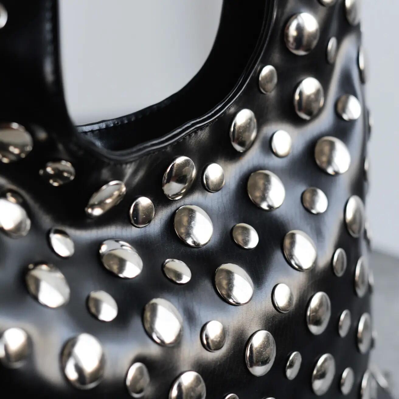 Il suo manico aggiunge un dettaglio elegante che contrasta con la ribellione delle borchie, creando un perfetto equilibrio tra sofisticazione e forza.