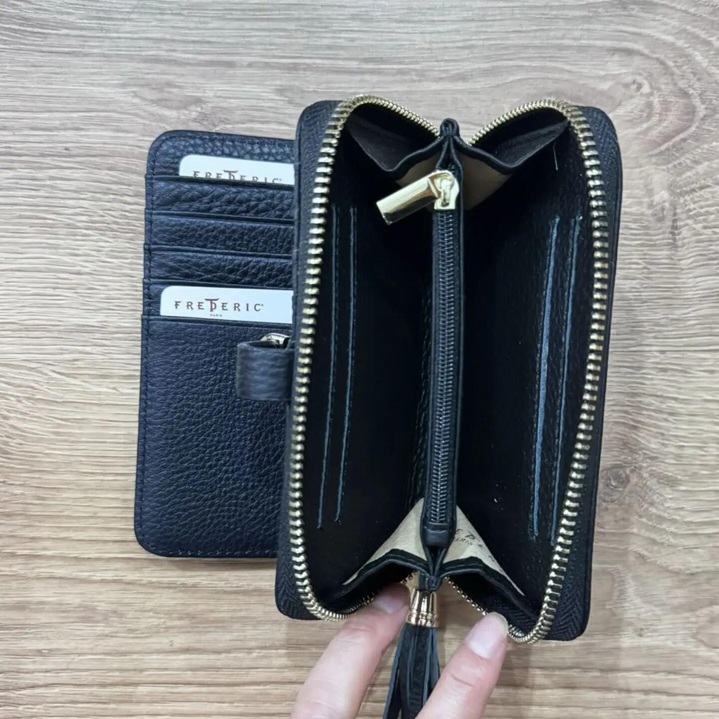 Portafoglio in pelle di vacchetta martellata, fatto a mano. Può contenere fino a 14 carte. Chiusura principale con zip e divisorio interno con zip. Dimensioni (L x A x P): 8 x 10 x 2,5 cm. Reazlizzato a mano