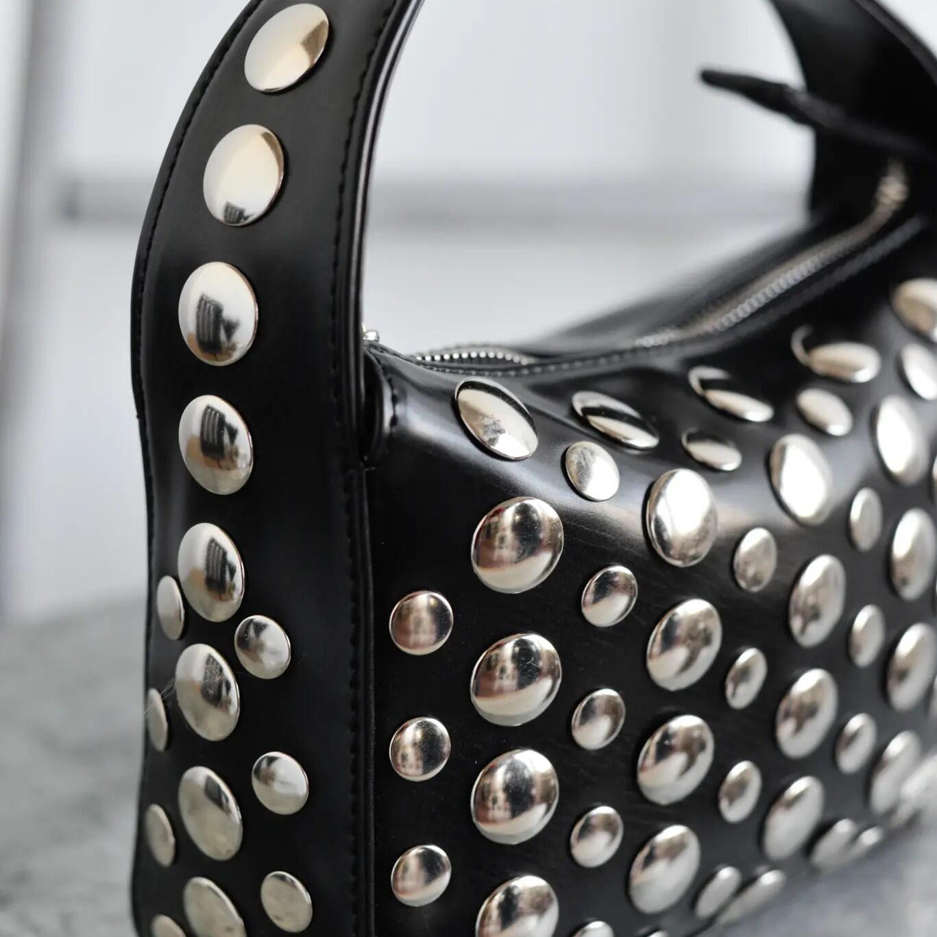 Rivestita di borchie grandi, mantiene quell'aria ribelle ma sofisticata che definisce la collezione.